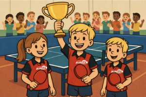 enkelspel versloeg ze Bram en Arnov in drie games. Tegen Hugo verloor ze nipt de vijfde game met 11-9. Het